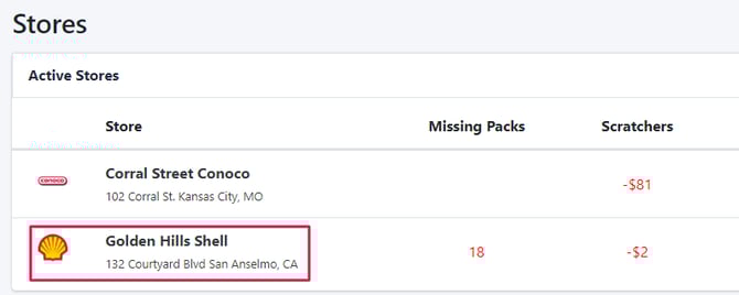 Backstock are packs that are sitting in an office or store's safe. To see a store’s backstock, select a location on your dashboard.
