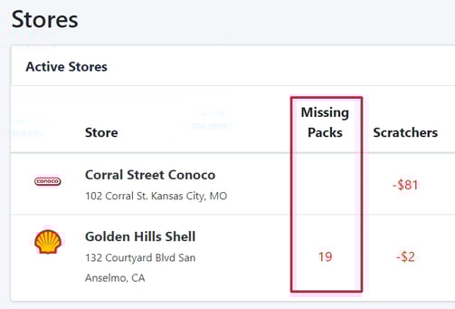 A missing pack is a pack that has been activated in your store but doesn’t appear in any audit. You can see if there are any missing packs at your locations in the admin dashboard.