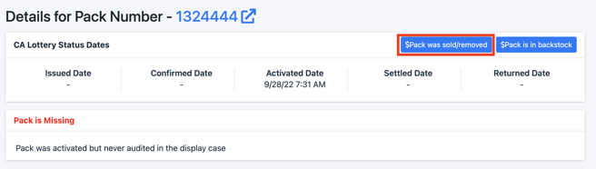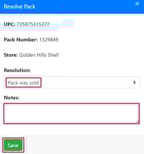 If there was another resolution for your missing pack, click Pack was Sold/Removed in the top right.