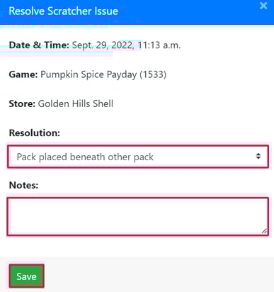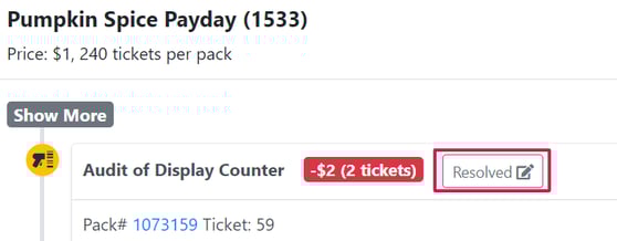 When there is a discrepancy with your scratchers, you have the option to resolve the issue and balance your records. For more information on investigating issues, see our training video here.
