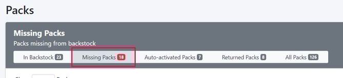 The Packs page will automatically open to show your backstock. In the top menu, click the Missing Packs tab.