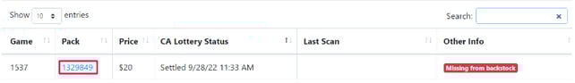 You can see the full list of missing packs for that store in the list. To see more details on a missing pack, click the pack number.