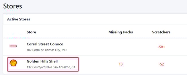 To check a store’s missing scratchers, select the individual store on your dashboard.
