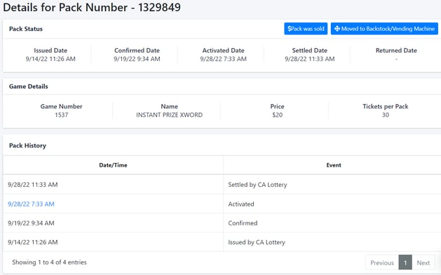 Settled Date - When the state lottery system collected payment for the pack.